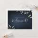 "Você será design moderno do roteiro da meu dama de honra" e das hortaliças da folha da aguarela mínima no fundo temperamental dos azuis marinhos, simples botânico e elegante, excelente para o casamento moderno, o casamento romântico, e o casamento do jardim botânico no verão e na queda.