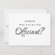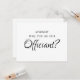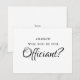 Cartão personalizado de cerimoniantes de casamento com um fundo branco tradicional que pode ser alterado para qualquer cor, e um modelo de "você será nosso(a) celebrante?" na frente com o texto " Amor ADICIONE O NOME DO CASAL" no verso.