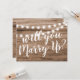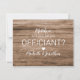 Cartão personalizado de celebrante de casamento com um fundo de madeira rústica e um modelo de case-nos.