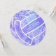 Esse convite de festas giro de voleibol tem um tema de cor roxa com sotaques azuis claros e mostra a imagem contornada de um simples voleibol - um delicado padrão de rabiscos, flores e penas em cobrir brancos - todos menos um dos painéis texturizados do voleibol - personalizam com seus detalhes de celebração - de katz_d_zynes