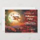 Um convite para a festa de Halloween com uma bruxa passando por uma lua de cheio agitando as folhas do outono! Personalize o texto de exemplo para suas preferências. A imagem traseira pode ser removida.