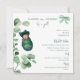 Convite para Chás de fraldas. Verde. Waddle e Swaddle. Quadrada.