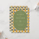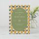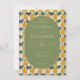 This elegant wedding invitation features a central oval with a muted green background, surrounded by a charming pattern of stylized pears in warm yellow and orange hues on a cream backdrop. The design uses clean lines and flat colors for a modern yet classic feel, enhanced by a sophisticated serif font that adds formality to the layout. The playful pear illustrations create a cohesive theme while maintaining an inviting atmosphere, perfect for celebrating a special occasion like a wedding. The customizable text allows for personalization, making it ideal for couples looking to add their unique touch to their big day.