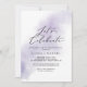 Este convite para comemorar vamos roxos de lavagem com aquarelas é perfeito para uma festa de noivado moderna, casamento após festa, aposentadoria, graduação ou qualquer evento feliz. O design simples e clássico apresenta uma abertura de cor púrpura de água pastel lavanda com estilo elegante minimalista.