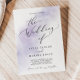 Este convite de casamento roxo de lavagem de água é perfeito para um casamento moderno. O design simples e clássico apresenta uma abertura de cor púrpura de água pastel lavanda com estilo elegante minimalista.