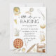 Este encantador convite para o chá de fraldas apresenta uma imagem deliciosa de uma pequena torta assando no forno, perfeita para uma celebração doce e acolhedora acolhendo a nova chegada. As cores suaves do pastel e a design caprichosa fazem dela uma escolha encantadora para um chá de fraldas honrando a futura mãe.