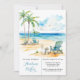 Espero que gostem deste oceano azul-aquarela com cadeiras de praia e uma linda palmeira verde num belo dia ensolarado. Convites e suprimentos de festa de casamento correspondentes estão disponíveis neste conjunto de coleções.