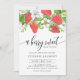 Um bebê doce de fruta está a caminho! Convide os convidados para o seu evento com este convite personalizável para o bebê brunch. Apresenta terra de cor-de-água de morangos e flores de morango. Personalize este convite de chá de fraldas de morango adicionando seus próprios detalhes de evento. Este convite para o brunch de bebê com aquarela é perfeito para chás de fraldas de verão.