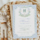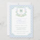 Convites Watercolor Blue 1st Birthday Monogram Crest Party