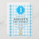 Convites Watercolor Blue Check Koala Birthday Invitation