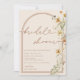Esses convites elegantes são perfeitos para chás de panela temáticos de flor silvestre, boêmia e jardim. Eles apresentam um roteiro manuscrito de coração, flores silvestres de aquarela e um cenário de campo. O texto e a arca são uma cor terracota e as disposições florais estão em tons de amarelo mostarda, verde-sábio e creme.
