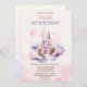 Este primeiro convite de aniversário com castelo aquarela em nuvens.