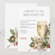 Ring in the New Year with timeless elegance. This design features a sparkling champagne flute adorned with winter florals, glossy holly leaves, and rich red berries a perfect balance of sophistication and seasonal warmth.