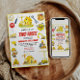 Vroom, let’s dig into fun! This watercolor construction 2nd birthday party invite features a happy birthday kid, colorful trucks, diggers, and construction zone details. Perfect for toddler boys and girls who love bulldozers and dump trucks. Personalize the text for your child’s name, party details, and RSVP. Great for construction themed birthdays, kids parties, and builder celebrations. Adorable, modern, and playful design—ideal for a little builder’s special day!