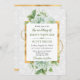 Aquarela e design Eucalyptus Greenerescente Dourado com um fundo floral branco