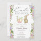 Este convite adorável apresenta ovos de páscoa pintados manualmente com aquarela, coelho e flores.