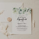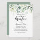Este convite para o café da manhã de casamento com eucalipto em aquarela é perfeito para um evento rústico. Este design artístico apresenta uma cor aquosa, desenhada à mão, uma folhagem verde de eucalipto, inspiradora beleza natural.