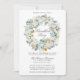 Elegante Watercolor, Convite de festas Floral Wreath Hanukkah. Inclui lindas flores brancas de anêmona, folhagem botânica e pínus cones. Script Silver. Pó Azul.