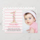 Este Aniversário apresenta uma Floral de Aquarela Primeiro Aniversário // Flores Rosa, Coral e Amarelo com folhas Verdes na forma do número 1 e listras cor-de-rosa no fundo. Adicione a sua foto favorita do seu filho ao convite. Bolinhas no verso do convite. Para obter informações sobre alterações de design personalizadas pelo designer independente, envie um email para paula@labellarue.com ANTES de personalizar ou fazer um pedido.