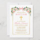 Elegant Watercolor Pink White Floral Baptism Invitation includes pink roses, white flowers and greenery. Gold Cross. Pink Blush Bow Ribbon. Gold Frame.
