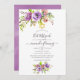 Rosas de púrpura e de pêssego e peônias de morcego floral mitzvah convite com sotaques de coral, ameixa e verde-salva.
