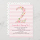 Floral de Aquarela Dois para o Segundo Aniversário // Flores Rosa, Coral e Amarelo com folhas Verdes na forma do número DOO e listras cor-de-rosa no fundo. Bolinhas no verso do convite. Para obter informações sobre alterações de design personalizadas pelo designer independente, envie um email para paula@labellarue.com ANTES de personalizar ou fazer um pedido.