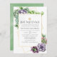 Trendy suculenta o convite do morcego mitzvah com moldura geométrica dourada e lavagem verde-aquarela sage inversa.