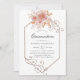 A cor-de-rosa terracotta quinceanera floral é convidada com uma estrutura de brilho projetada para ser rápida e facilmente personalizada de acordo com as especificações do seu evento. Crédito a chocolatesquestudio.