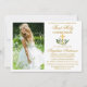 O Primeiro Convite à Santa Comunhão do Elegante Moderno com Cruz e Foto. Aquarela Floral inclui peões flores brancas e verde botânico. Dourado Script.