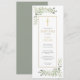Apresentando delicadas folhas de aquarela e um elegante crucifixo de ouro, este batismo/batismo chic neutro em relação ao gênero pode ser personalizado com sua informação especial, com um fundo de sábio prateado no reverso. Projetado por Thisnotme©