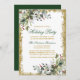 Elegante Watercolor Greenery Holiday Party O convite inclui belos verdes-botânicos com aquarelas, folhas eucalipto, bagas sagradas e outras folhagens lindas. Dourado quadro de brilho. Dourado e Verde Script.