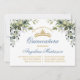 Cintura Elegante Moderna Cintura Cinematográfica Elegante Quinceanera O Convite inclui folhas de eucalipto, folhagem botânica verde, folhas azuis empoeiradas e outros belos lençóis botânicos. Script de Caligrafia. Dourada Coroa Tiara. Pó Azul.