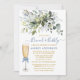 A moderna Elegante Aquarela Verde Botânico Dusty Blue Brunch & Bubble Card inclui folhas de eucalipto, folhagem botânica verde, folhas azuis empoeiradas e outros belos lençóis botânicos. Dourado Script. Vidro de champanhe com Arco azul empoeirado.