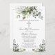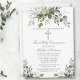 O Primeiro Convite à Comunidade Elegante Moderno inclui folhas de cor aquosa de eucalipto e outras lindas folhagens botânicas verdes. Silver Cross.