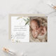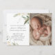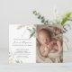 Este convite apresenta uma foto do bebê, aquarelas florais e uma cruz para convidar família e amigos para um batismo, batizar ou primeira comunhão sagrada.