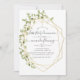 A moda verde e aquosa branca deixa um convite de comunhão sagrado com moldura geométrica dourada e tipografia elegante de escrita manual.