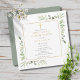 Apresentando delicadas folhas de aquarela e um elegante crucifixo de ouro, este primeiro convite de comunhão sagrado do quadrado chic pode ser personalizado com sua informação especial, com um fundo de sábio prateado no reverso. Projetado por Thisnotme©