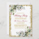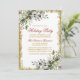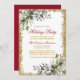 Elegante Watercolor Greenery Holiday Party O convite inclui belos verdes-botânicos com aquarelas, folhas eucalipto, bagas sagradas e outras folhagens lindas. Dourado quadro de brilho. Dourado e Red Script.