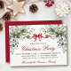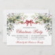 Modern Elegant Watercolor Winter Botanical Greenery and Holly Berries Christmas Party Invitation - Calligraphy Script and Red Ribbon Bow