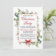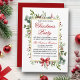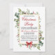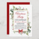 Elegant Watercolor Winter Greenery Christmas Party Invitation Card includes eucalyptus leaves and red holly berries. Red Bow Ribbon. Gold Frame.