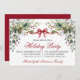 Modern Elegant Watercolor Winter Botanical Greenery and Holly Berries Christmas Holiday Party Invitation - Calligraphy Script and Red Ribbon Bow