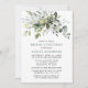 O Cartão de Convite para Chás de panela de Lunco de Cor Biológica Elegante Moderna inclui folhas de eucalipto, folhagem botânica verde, folhas azuis empoeiradas e outros belos lençóis botânicos. Sage Green Back.