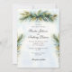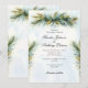 Um elegante design de aquarela floral com fundo aquoso azul macio. Este convite faz parte de um convite de casamento completo.