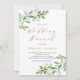 Convide os convidados para o seu evento com este convite de brunch de casamento personalizável. Apresenta buquês de aquarelas de flores verdes e brancas com um padrão botânico correspondente. Personalize adicionando seus detalhes. Este convite para o casamento é perfeito para primavera e casamentos no inverno.