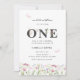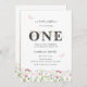 Este elegante convite de primeiro aniversário tem flores silvestres e texto de cinza. O verso é cor-de-rosa com uma foto grande. As borboletas acrescentadas lhe dão um toque extra feminino.
