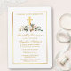 A Elegante Aquarela Magnolia Floral Primeira Comunhão Convite inclui uma magnólia branca, rosa-rosa-rosa, algodão e verde. Dourada Cruz. Dourado Script.