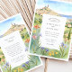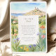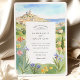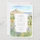 Celebre seu casamento com o charme e vibração do sul da França usando este convite de casamento Marselha. Apresentando uma visão iluminada pelo sol da icônica aldeia de Marselha no topo do morro e arquitetura de igreja dominada, a cena pintada à mão é enquadrada por flores silvestres coloridas e colinas ondulantes e moles que levam ao mar. A elegante composição captura o romance costeiro e a beleza Provençal da região mediterrânica. Perfeito para casamentos de destino em Marselha ou eventos inspirados na França, este convite é personalizável com seus detalhes pessoais.