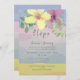 Um convite para casamento moderno e elegante para coloração d'água pastel com flores verdes e amarelas gigantes, cor-de-rosa e púrpura lilás. Convite de casamento único e perfeito para comemoração memorável com uma pequena coorte de pessoas queridas.