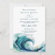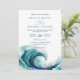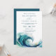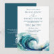 Convites Watercolor Ocean Wave Navy Blue QR Code Wedding