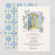 Convites Watercolor Olive Blue tile Greece Wedding Invitat